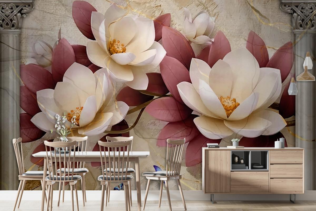 3 Boyutlu Çiçek Sütunların Arasında Duvar Kağıdı