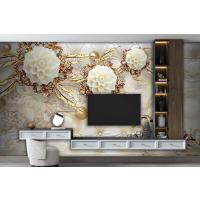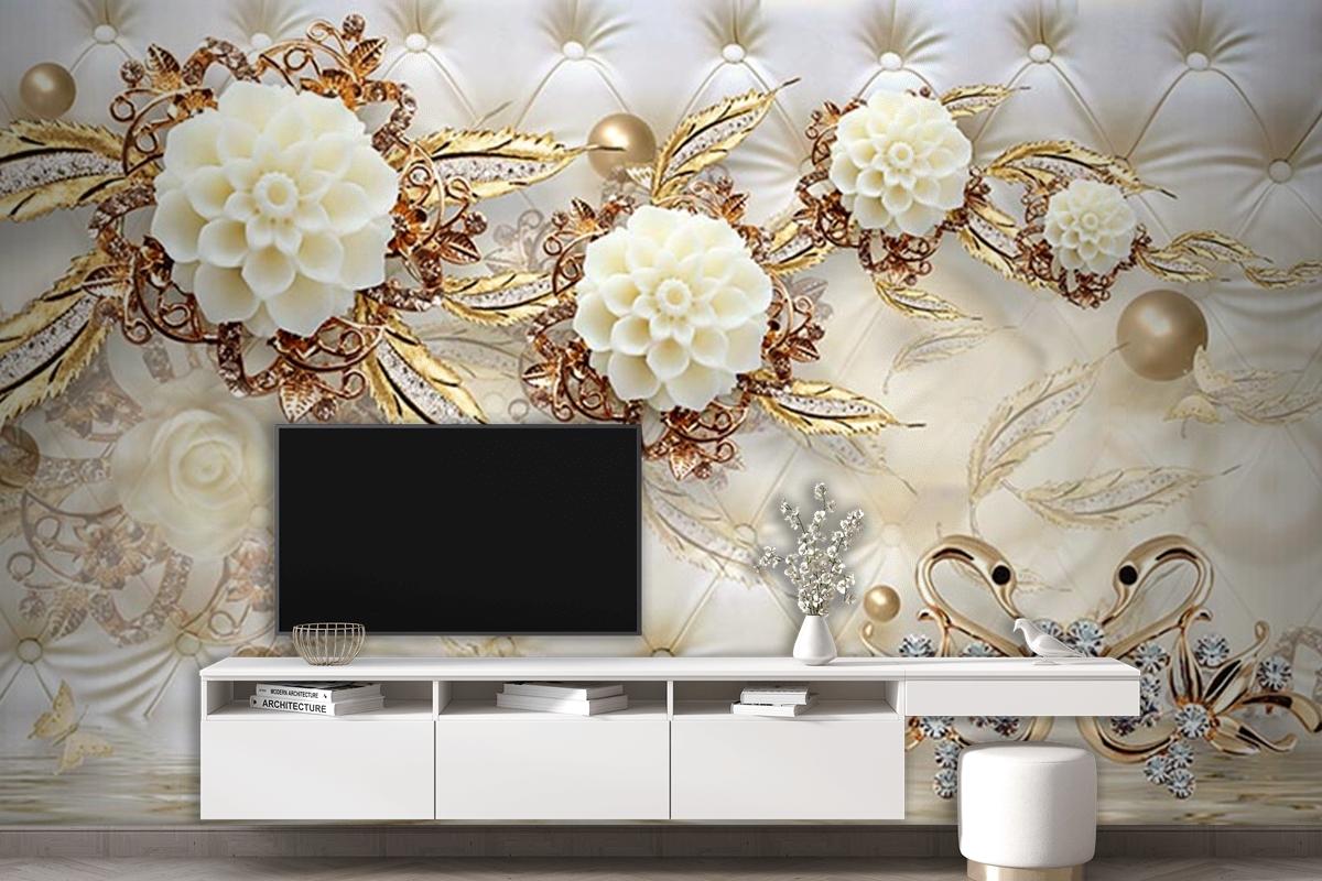 3 Boyutlu Tv Arkası Gold Çiçekler