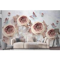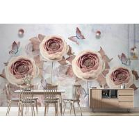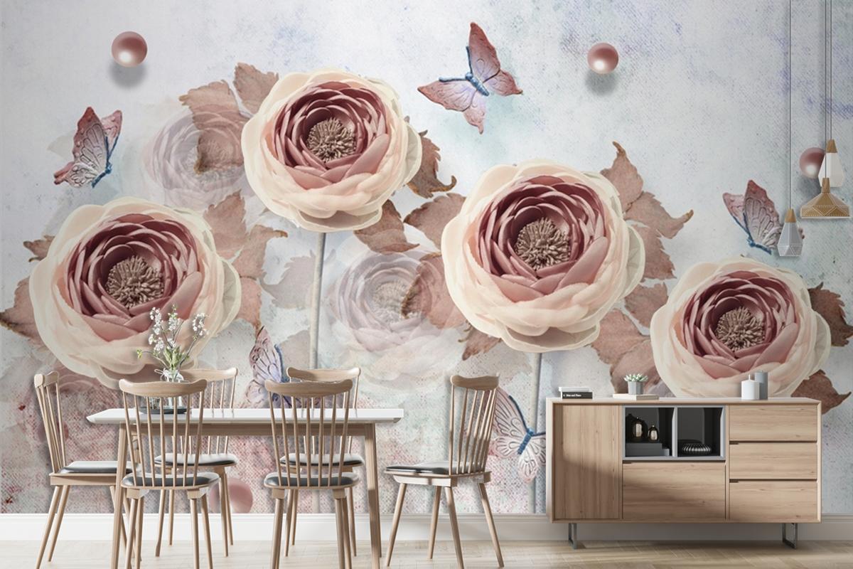 3D Çiçek Ve Kelebekler Vintage Duvar Kağıdı