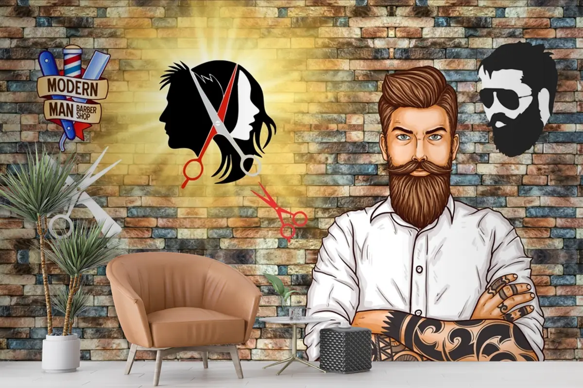 3D Duvar Kağıdı Berber Dükkanı Ve Salon