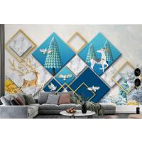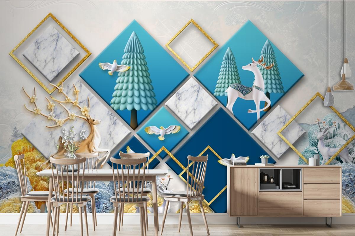 3D Duvar Kağıdı Çiçek Desenli Geyik Arka Planı