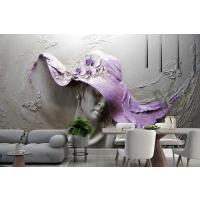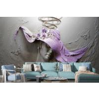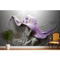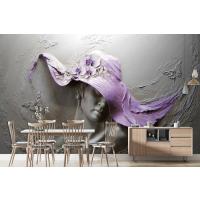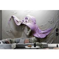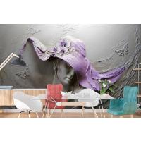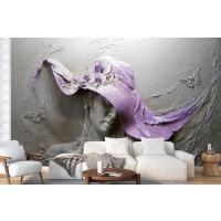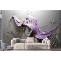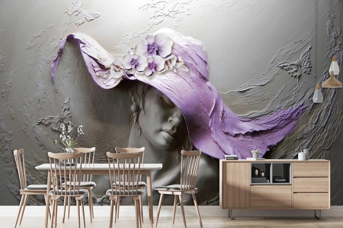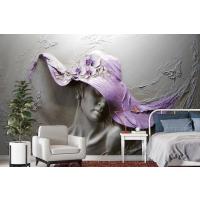 3D Duvar Kağıdı Mor Şapkalı Kadın Gri Soyut Taş Arka Plan