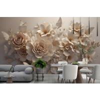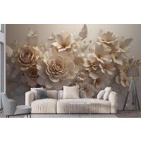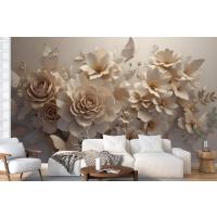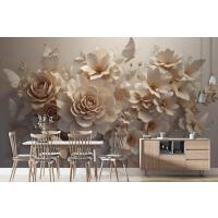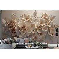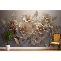 3D Görünümlü Kabartmalı Çiçek Duvar Kağıdı