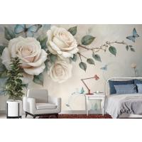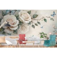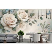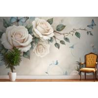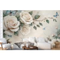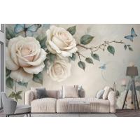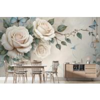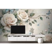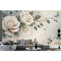 3D Görünümlü Krem Gül Çiçek Duvar Kağıdı