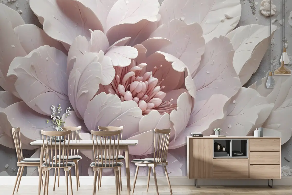 3D Görünümlü Yumuşak Çiçek Duvar Kağıdı