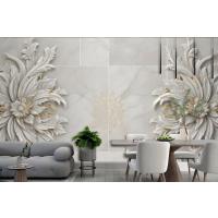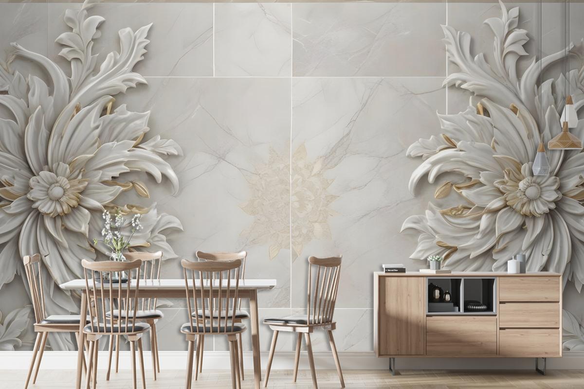 3D Kabartmalı Görünümlü Mermer Ayçiçeği Duvar Kağıdı