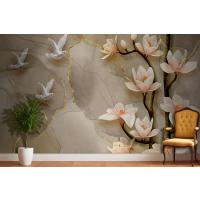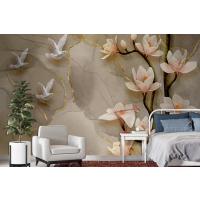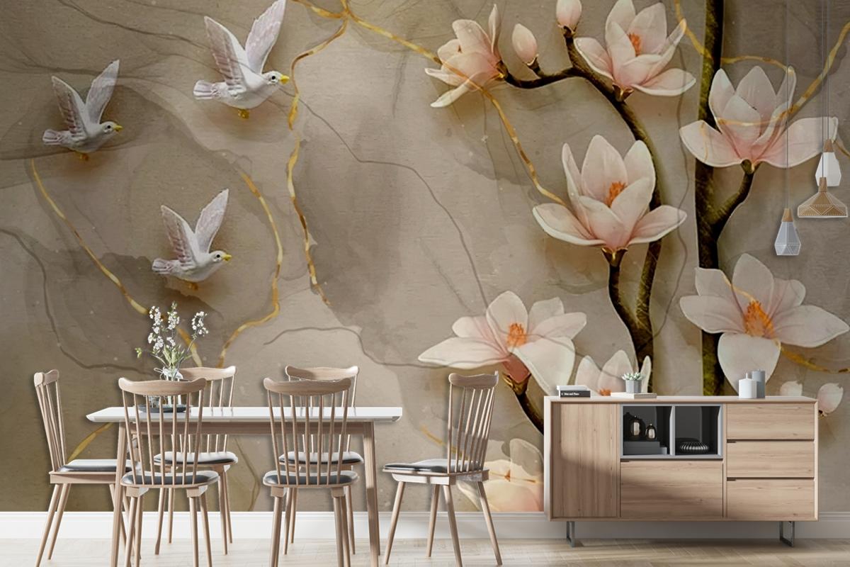 3D Kuş Çiçek Yaprak Arka Plan Duvar Kağıdı