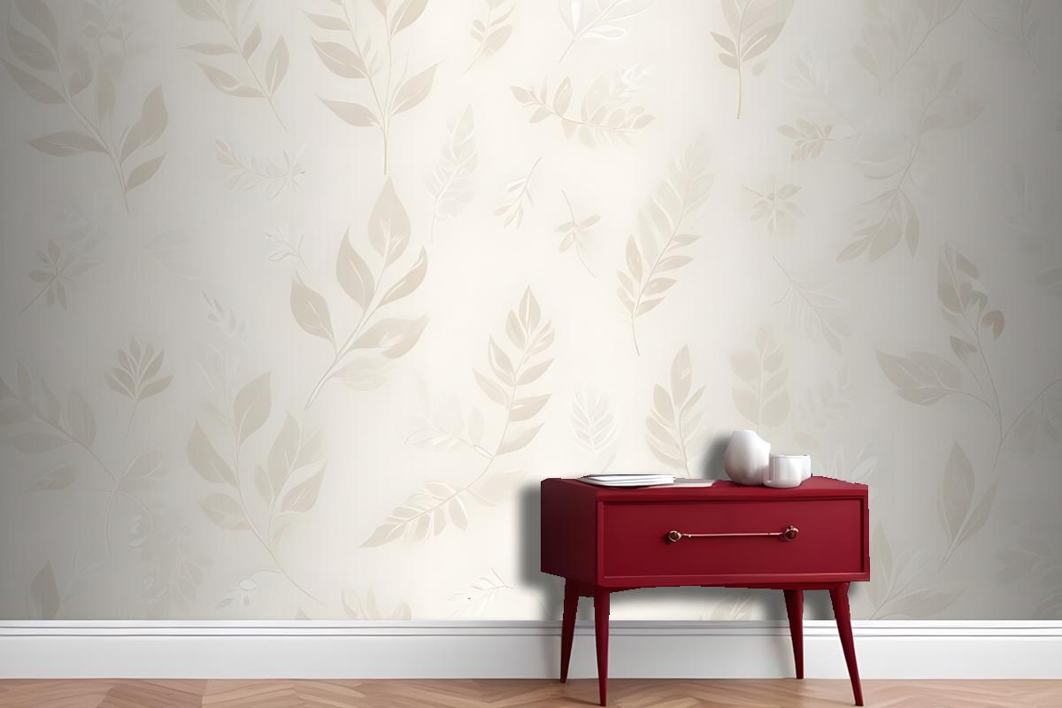 Açık Bej Antre Hol Koridor Duvar Kağıdı Duvarında Narin Beyaz Yapraklar Ve Çiçek Öğeleriyle Kusursuz Desen