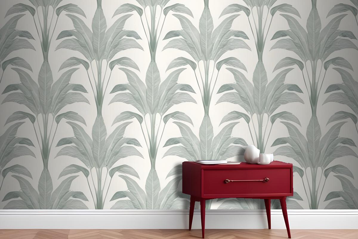 Açık Gri Antre Hol Koridor Duvar Kağıdı Duvarında Büyük Yeşil Palmiye Yapraklarının Veya Yapraklarının Tekrarlanan Deseni