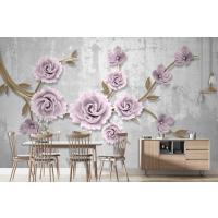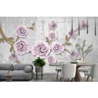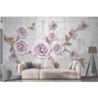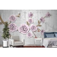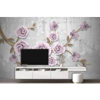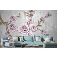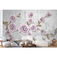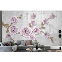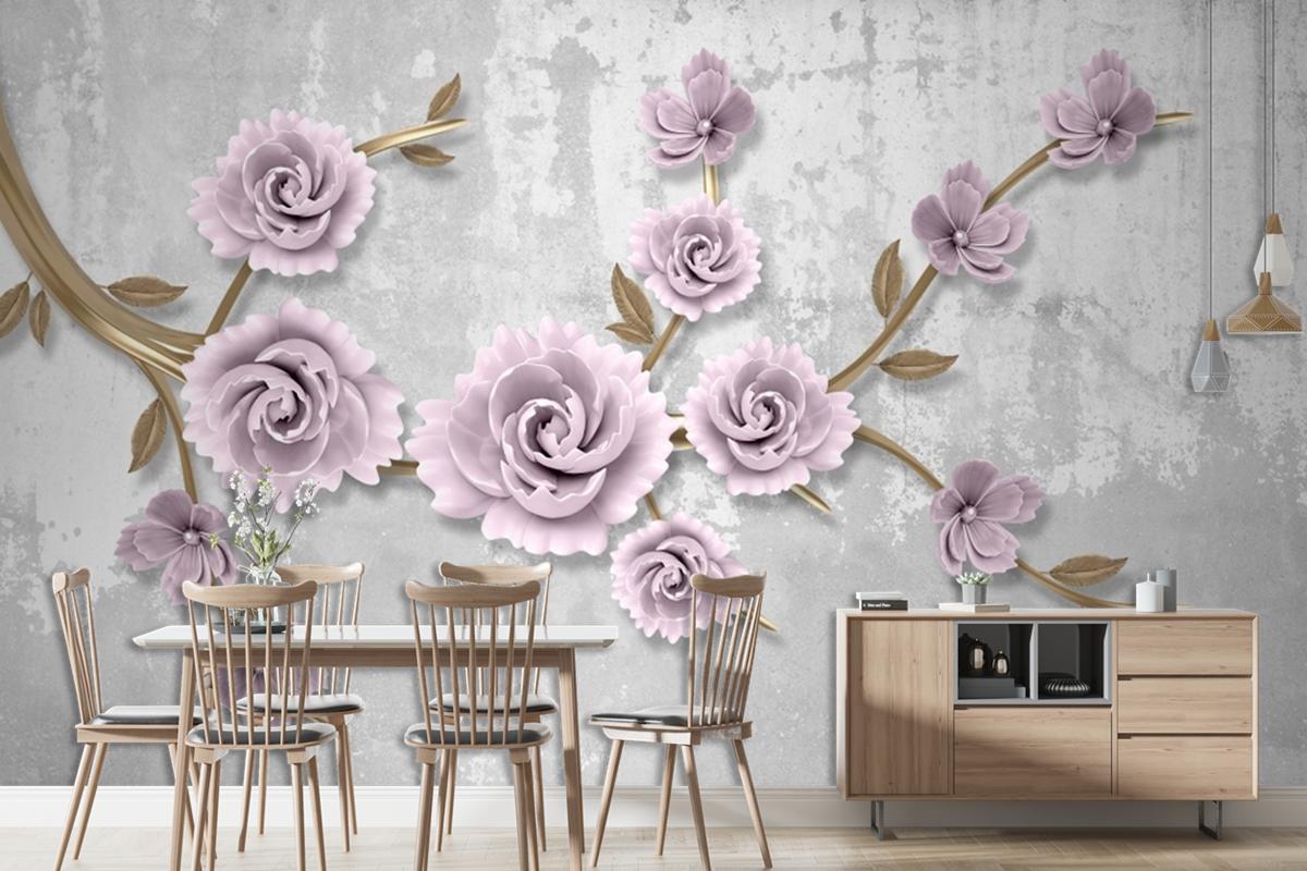 Açık Pembe Çiçekli Altın Dal 3D Duvar Kağıdı