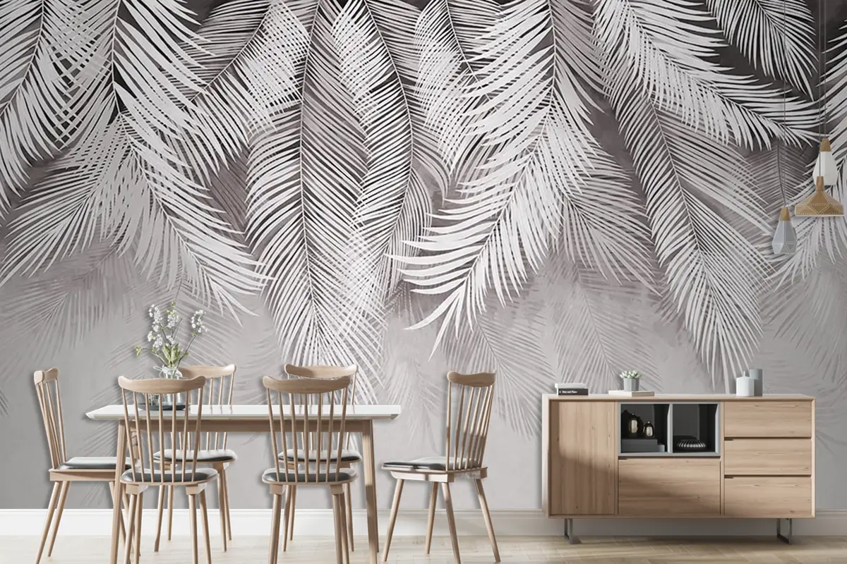 Açık Renk Tonlarında Tropikal Yapraklar Duvar Kağıdı