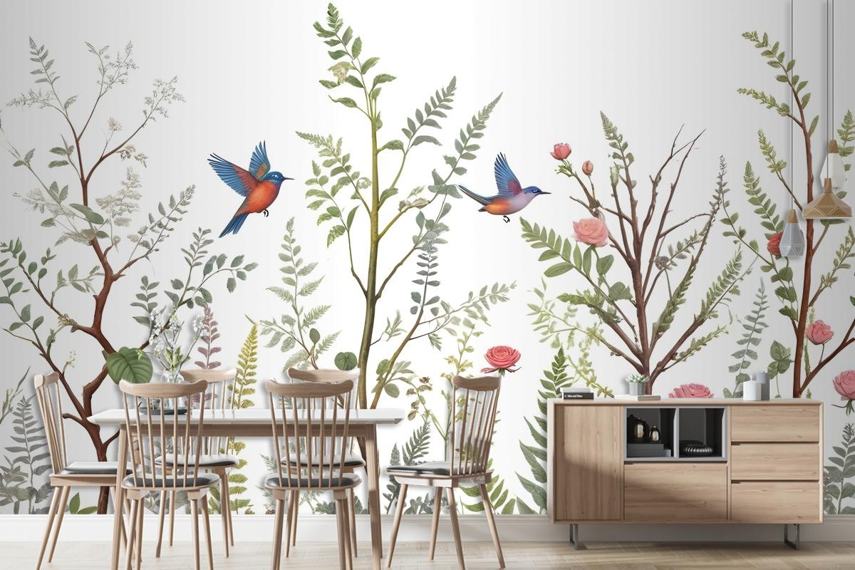 Ağaçlarda Kuşlarla Bahar Çiçeği Duvar Kağıdı