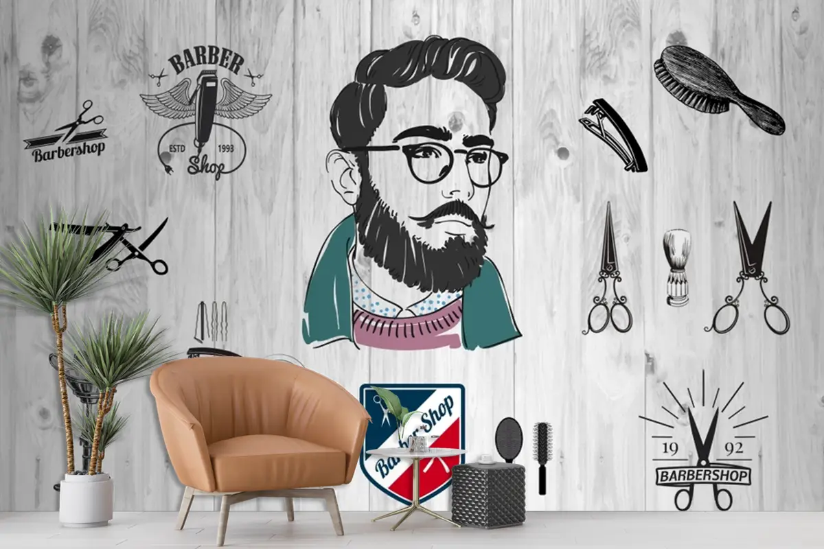 Ahşap Arka Plan Barber Shop Erkek Kuaför Duvar Kağıdı
