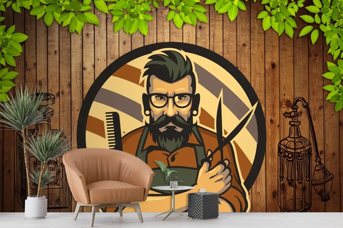 Ahşap Arka Plan Dekoratif Erkek Kuaför Duvar Kağıdı
