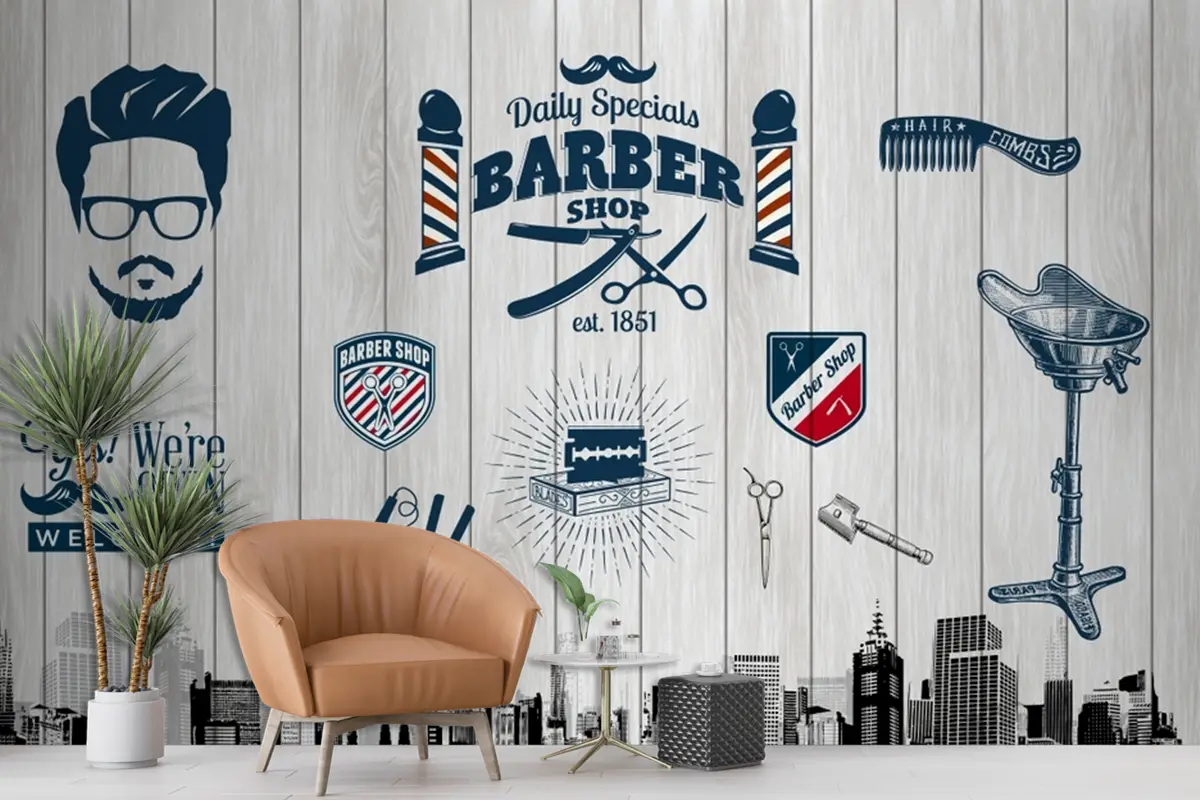 Ahşap Arka Plan New York Temalı Berber Duvar Kağıdı