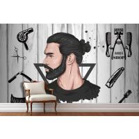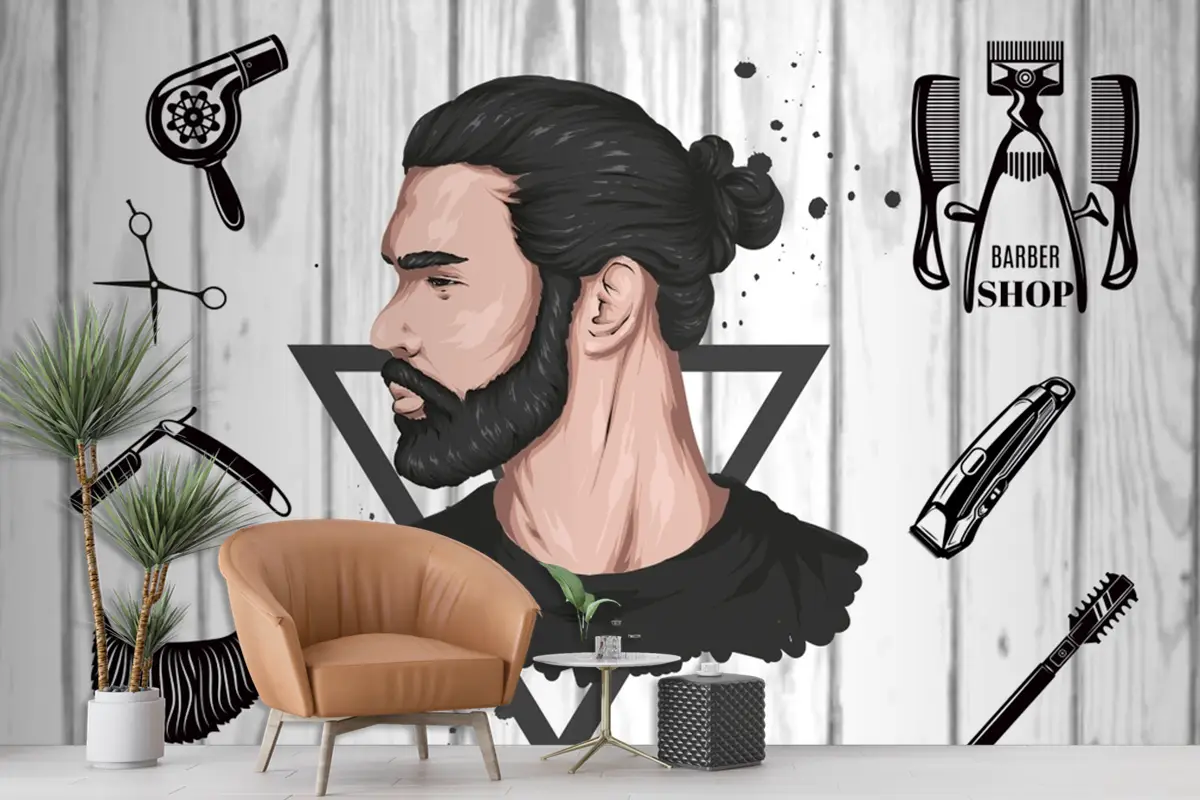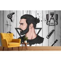 Ahşap Arka Plan Siyah Saçlı Kuaför Erkek Duvar Kağıdı