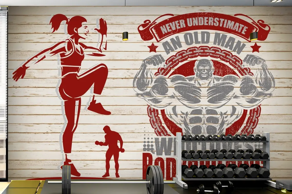 Ahşap Temalı Fitness Spor Salonu Duvar Kağıdı