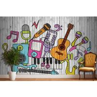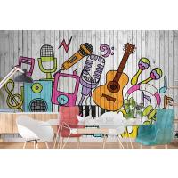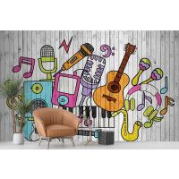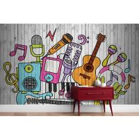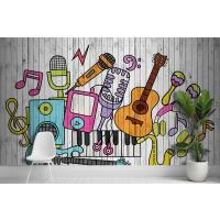 Ahşap Zemin Renkli Müzik Aletleri Duvar Kağıdı