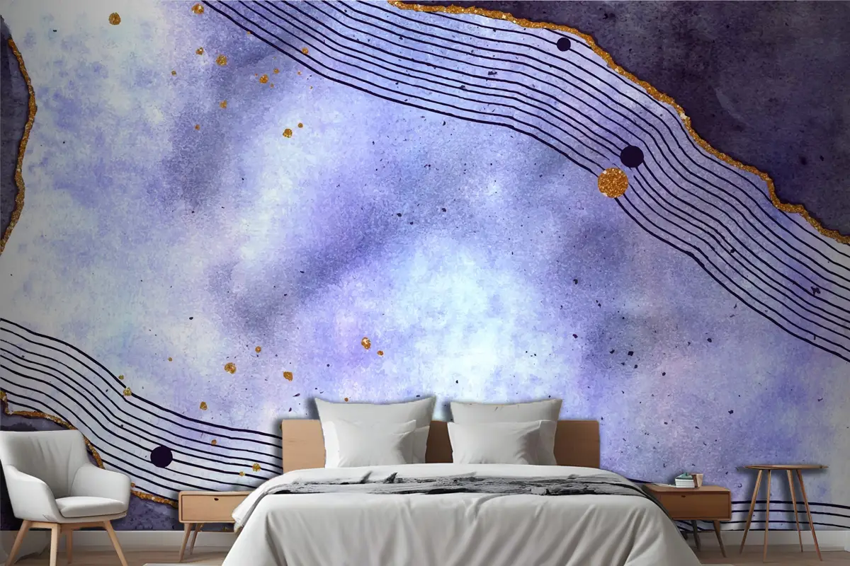 Altın Elementli Suluboya Boyalı Arka Plan Yatak Odası Duvar Kağıdı