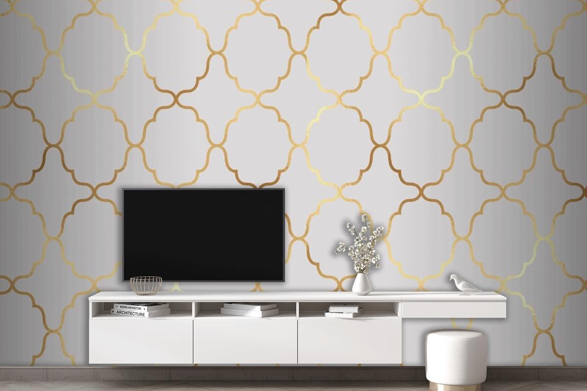 Altın Folyo Dokulu Dekoratif Arapça Temalı Desen Arka Planı Oturma Odası Duvar Kağıdı