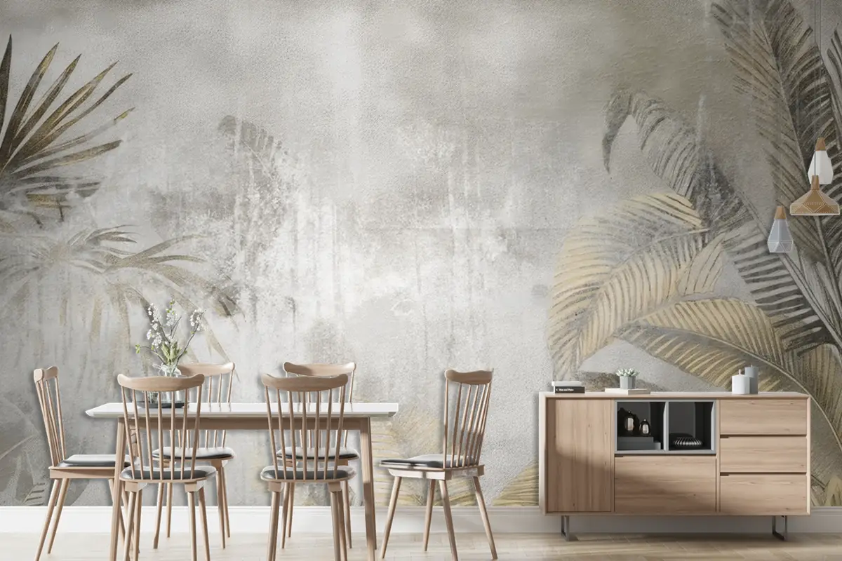 Altın Palmiye Yaprakları Vintage Duvar Kağıdı