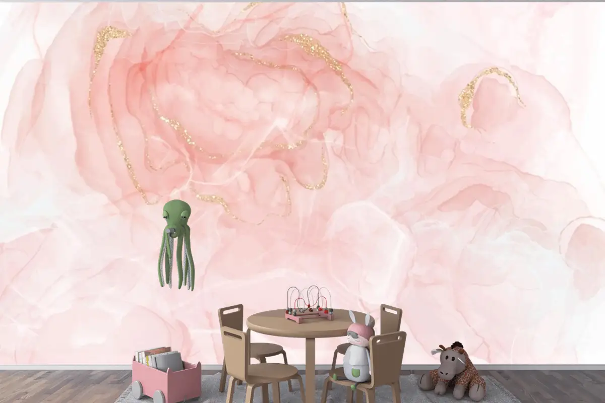 Altın Parıltılı Çocuk Odası Duvar Kağıdı Ile Zarif El Boyalı Alkol Mürekkep Arka Planı