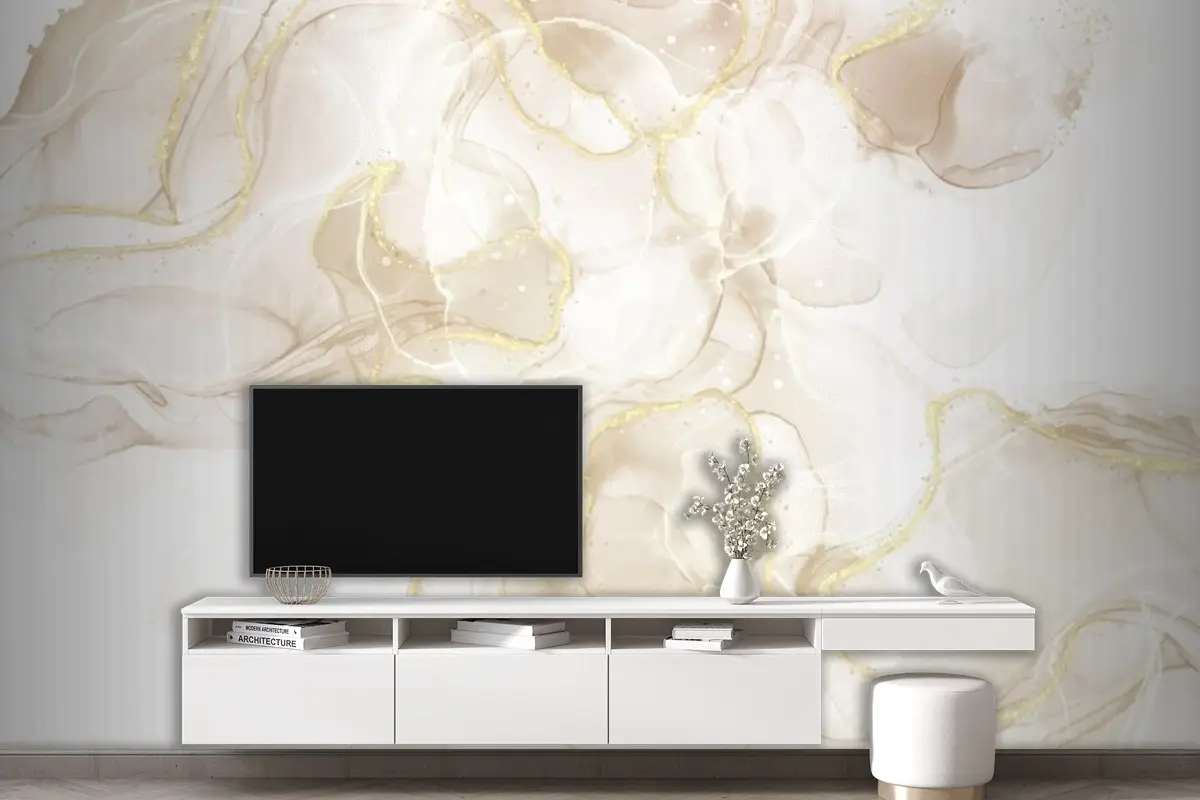 Altın Parıltılı Elemanlarla Sıvı Sanat El Boyalı Arka Plan Oturma Odası Duvar Kağıdı