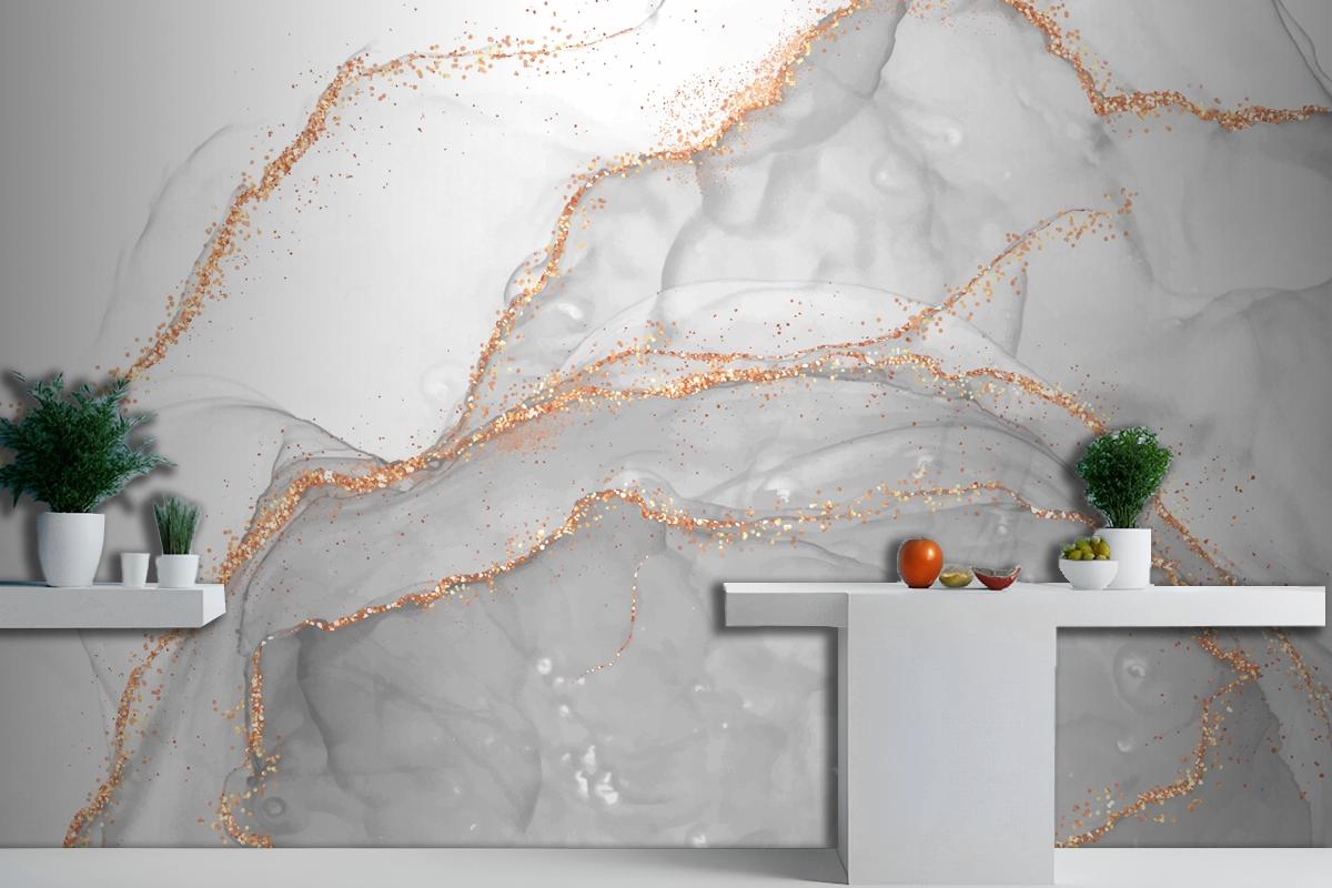 Altın Parıltılı Elementlerle Zarif Alkol Mürekkep Tasarımı Mutfak Duvar Kağıdı