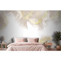 Altın Parıltılı Yatak Odası Duvar Kağıdı Ile Zarif El Boyalı Nötr Alkol Mürekkep Arka Planı
