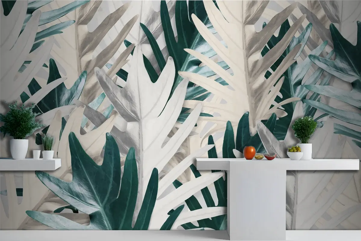 Altın Ve Yeşil Palmiye Yaprağı Mutfak Duvar Kağıdı