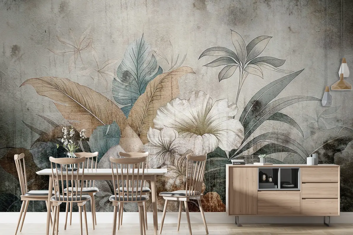 Antika Dokulu Bitkisel Desen Vintage Duvar Kağıdı