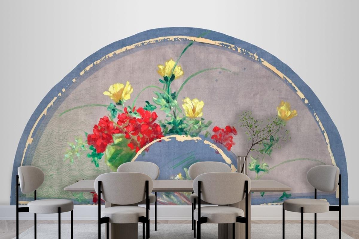 Antika İpek Yelpaze Vektör Tasarım Öğesi Duvar Kağıdı