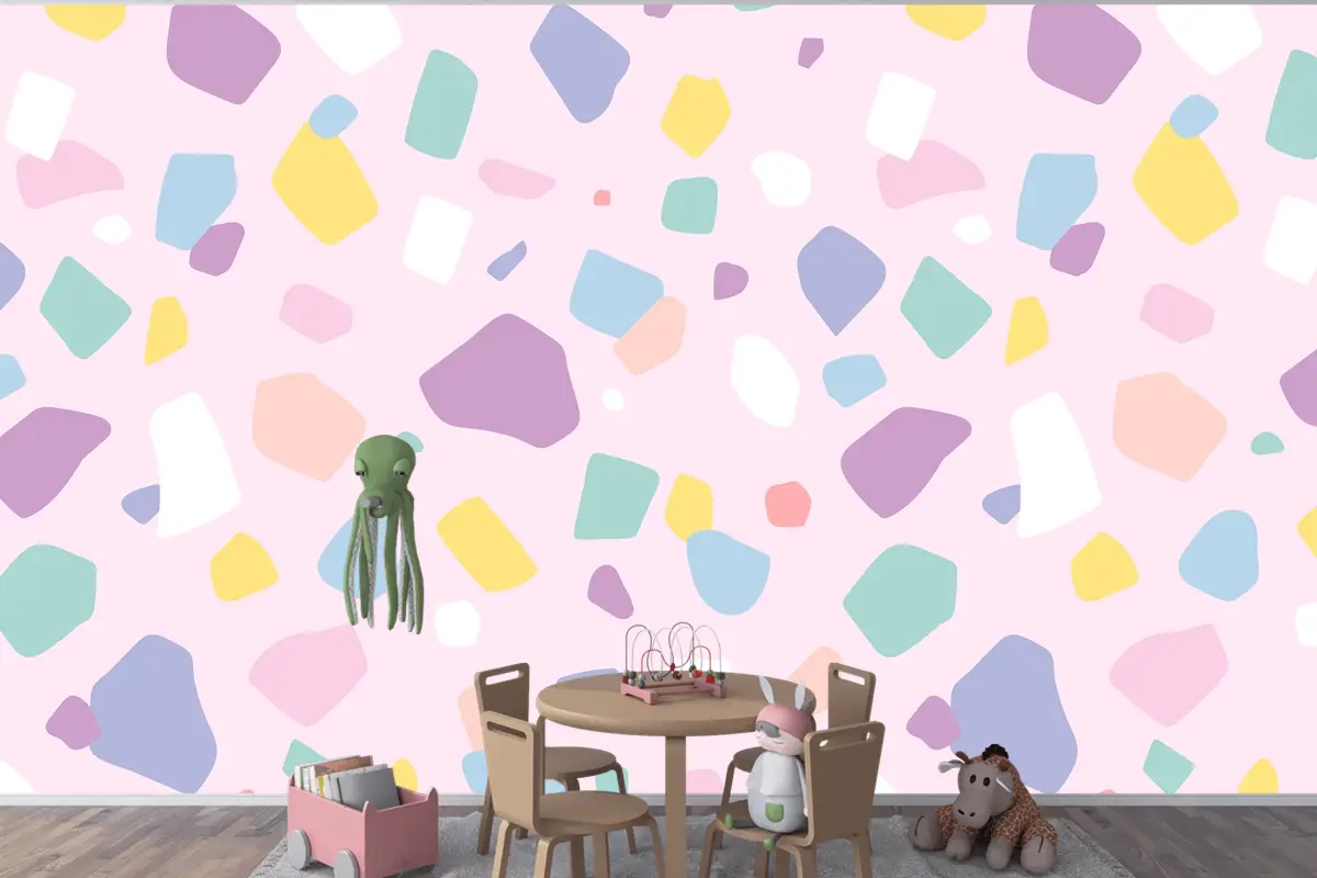 Arka Plan Dikişsiz Desen Vektör Sevimli Pastel Terrazzo Çocuk Odası Duvar Kağıdı