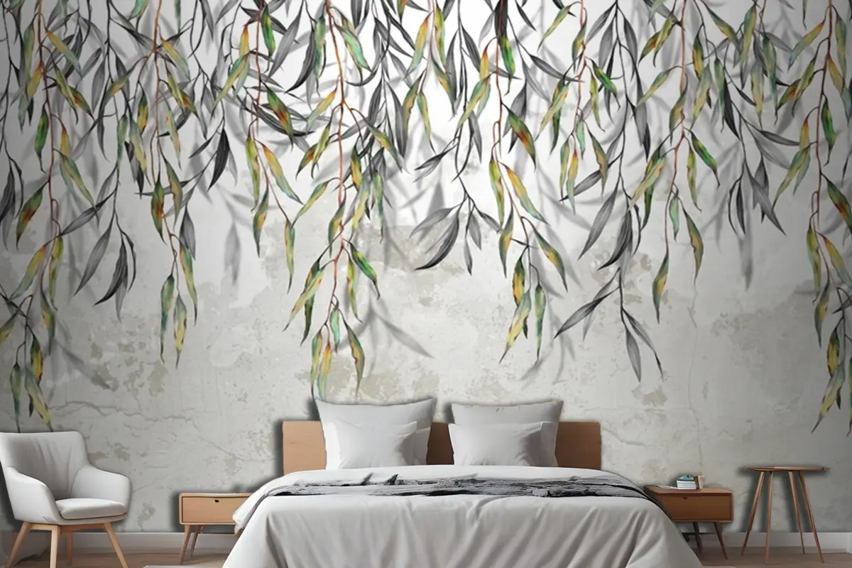 Arka Planda Yukarıdan Asılan Dallar Yatak Odası Duvar Kağıdı