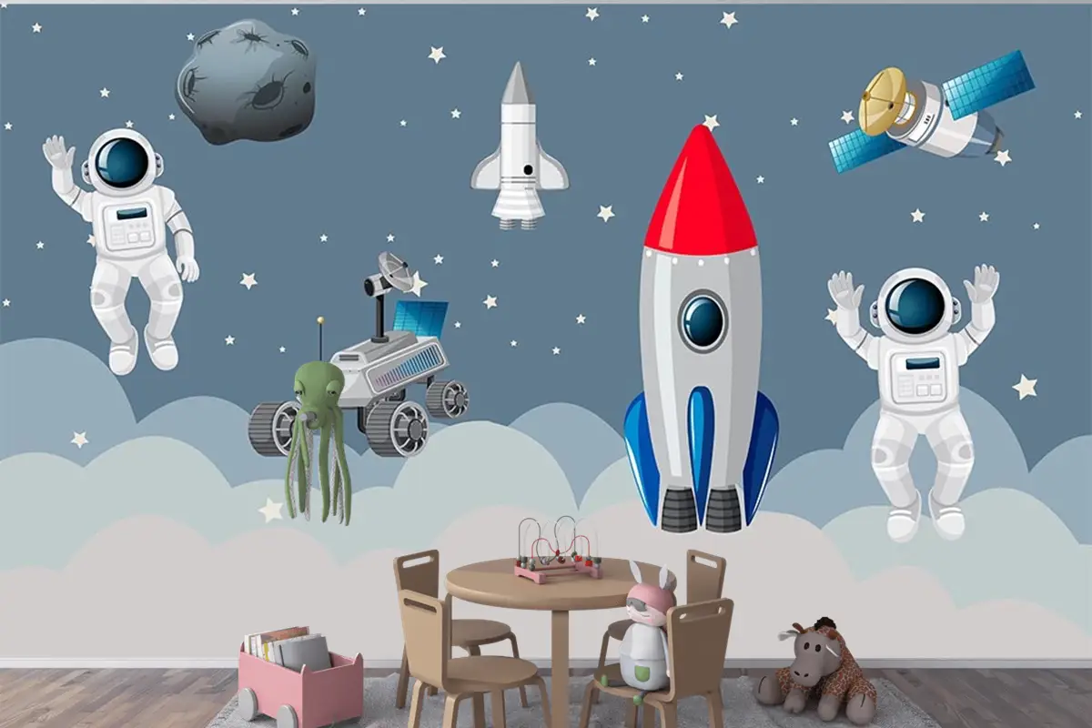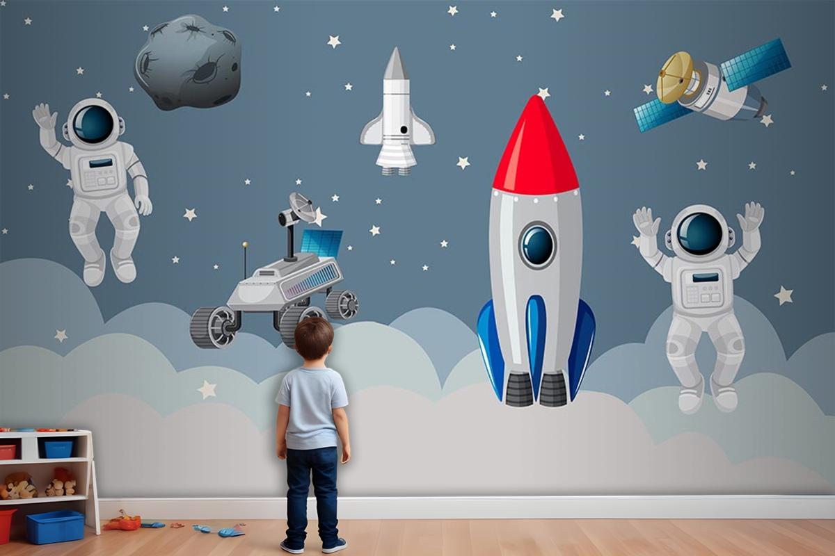 Astronotlar Ve Uzay Araçları Çocuk Odası Duvar Kağıdı