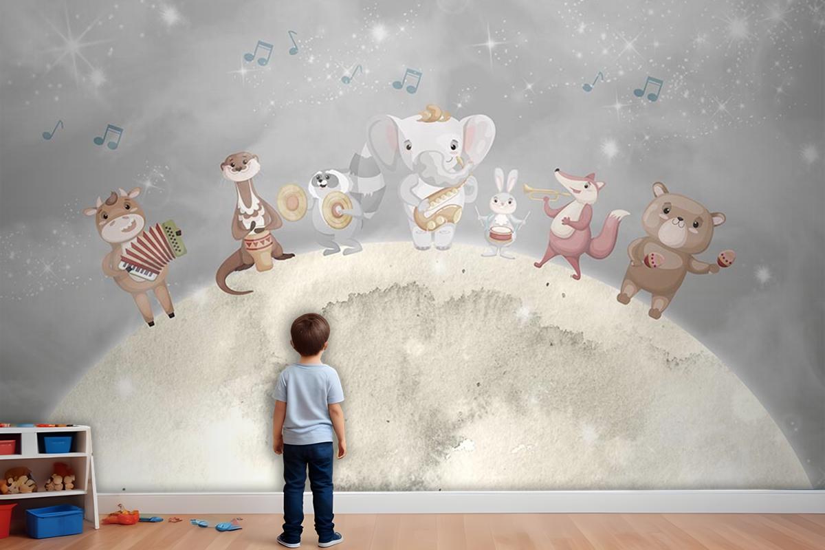Ay Üzerinde Müzik Çalak Sevimli Hayvanlar