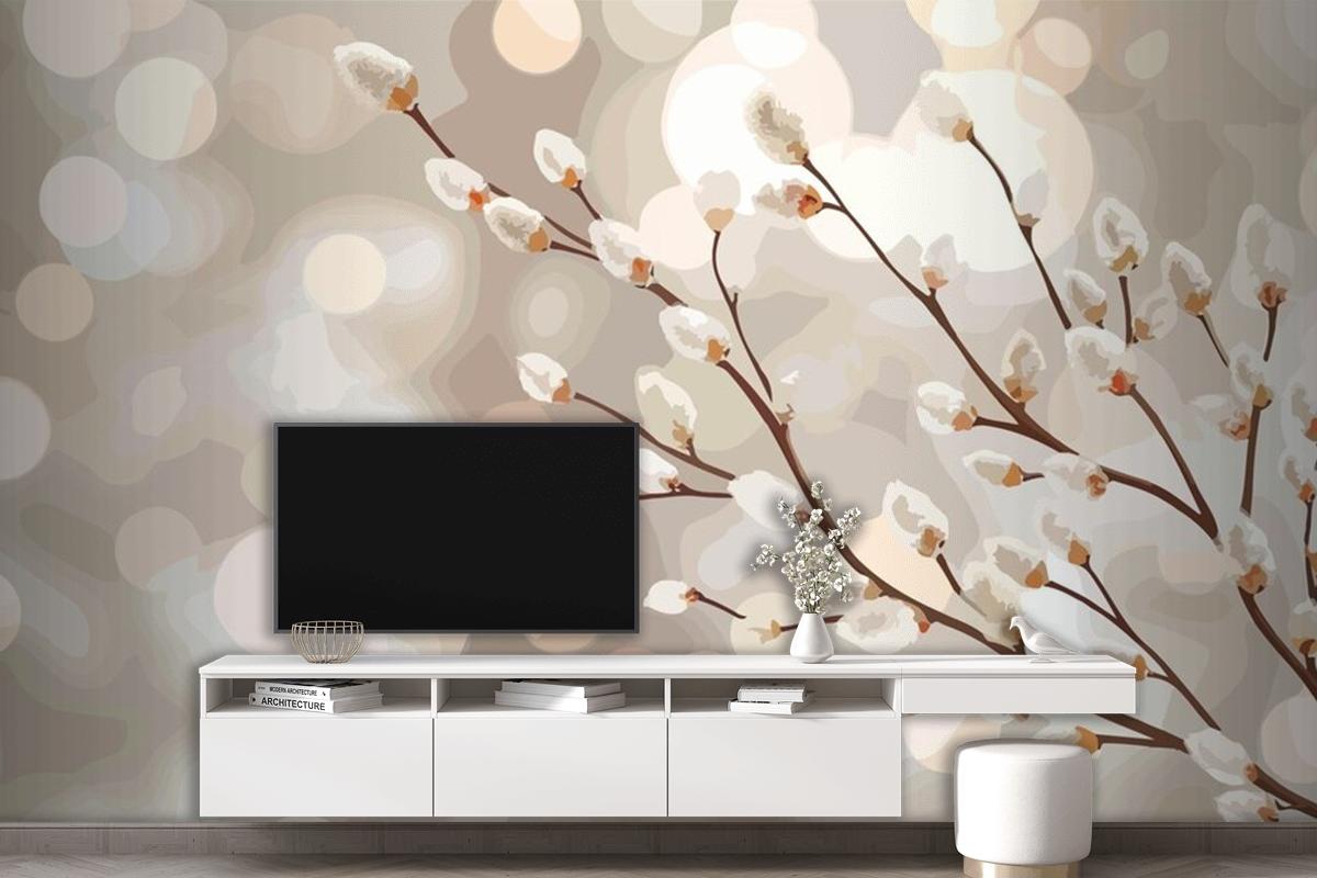 Baharı Anlatan Beyaz Çiçekli Bir Dal Tv Arkası Duvar Kağıdı