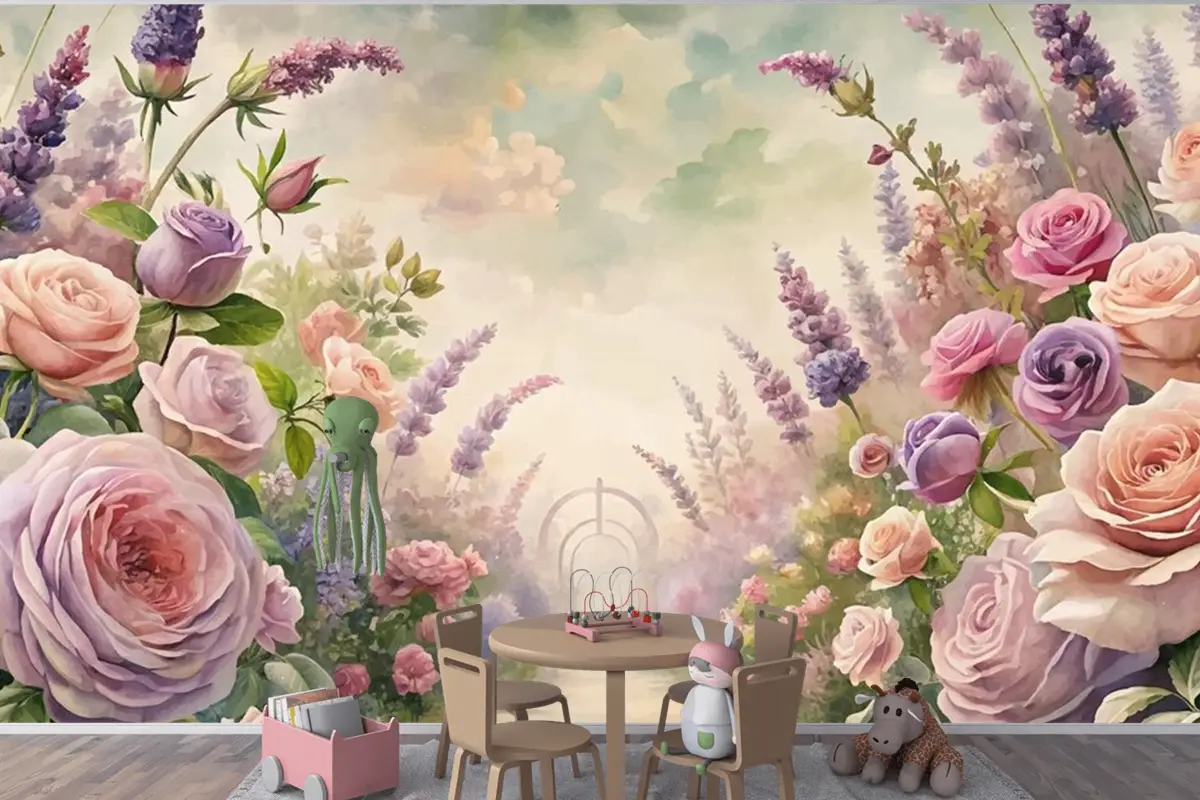 Bahçe Çocuk Odası Duvar Kağıdı Nden Esinlenerek Suluboya Arka Plan