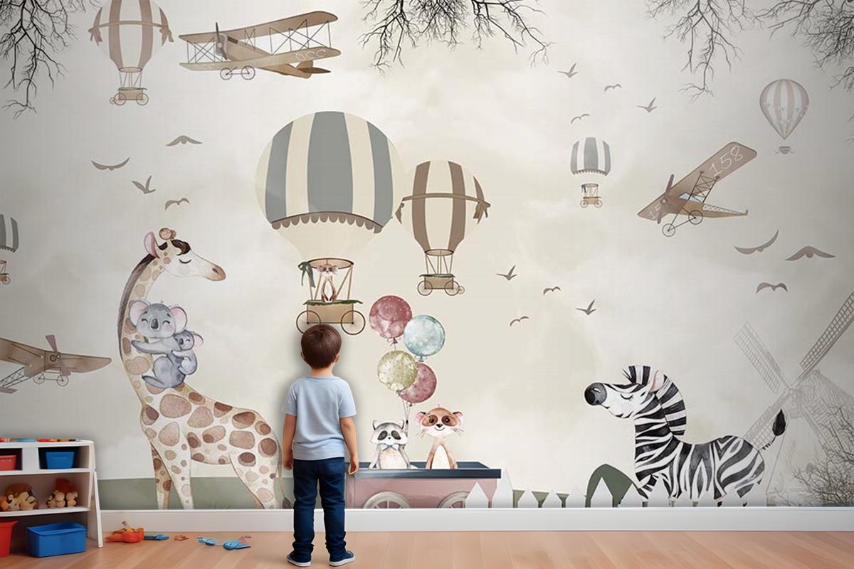Balonlar Uçaklar Sevimli Hayvanlar Çocuk Kağıdı