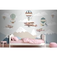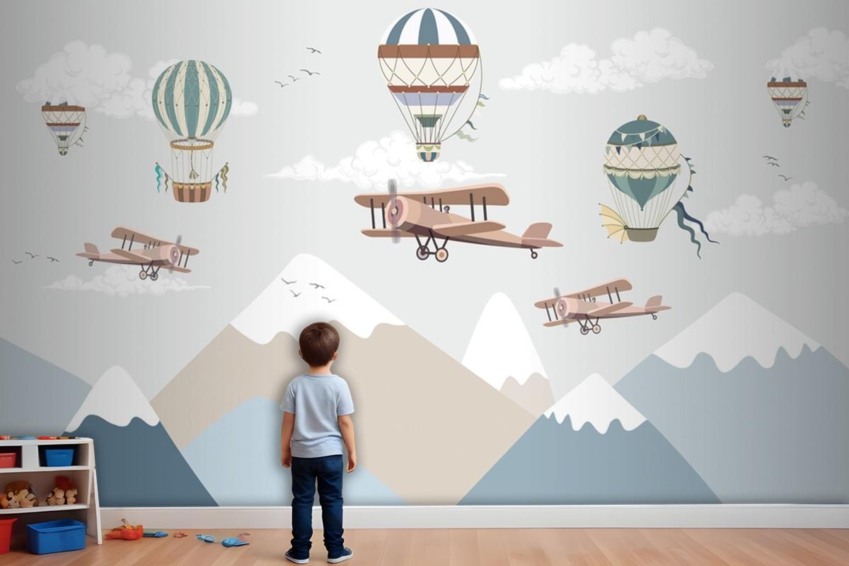 Balonlar Ve Uçaklar Ile Dağlar Çocuk Odası Duvar Kağıdı