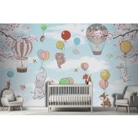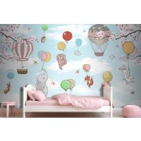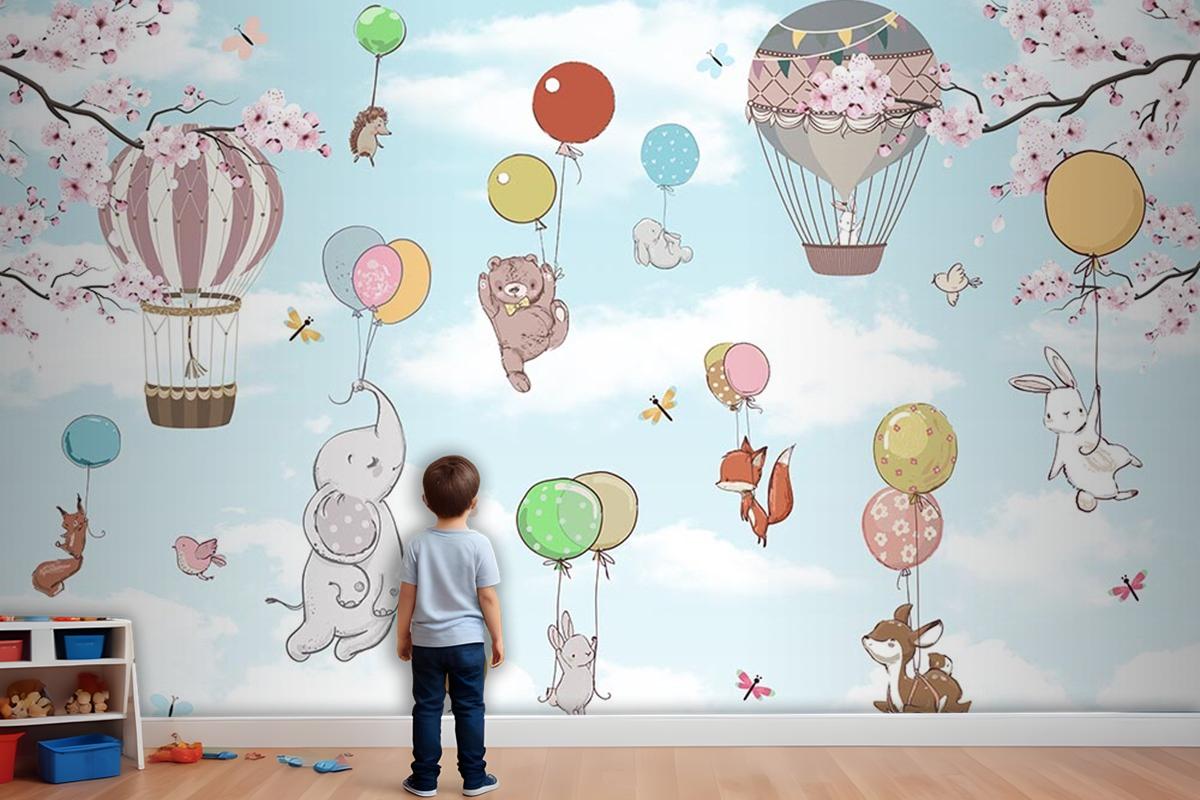 Balonlara Asılı Sevimli Hayvanlar Çocuk Odası Duvar Kağıdı