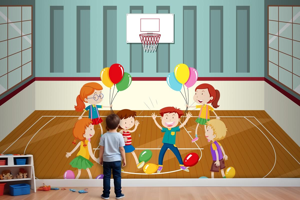 Balonlarla Fiziksel Aktivite Yapan Çocuklar Çocuk Odası Duvar Kağıdı