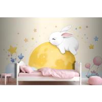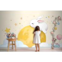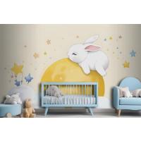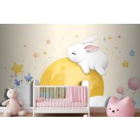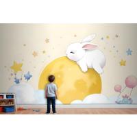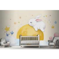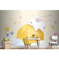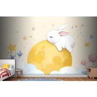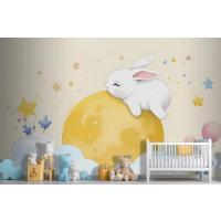 Bebek Karikatür Tavşan Ve Sarı Ay Çocuk Odası Duvar Kağıdı