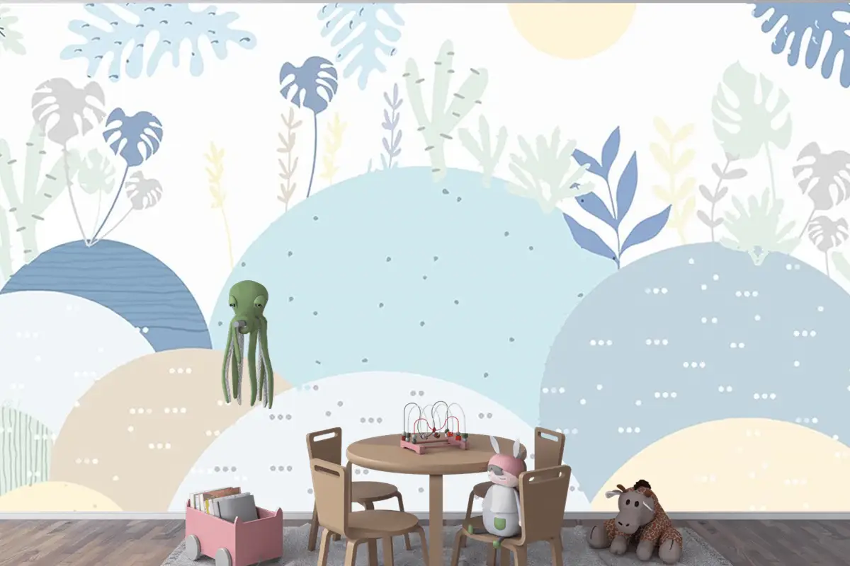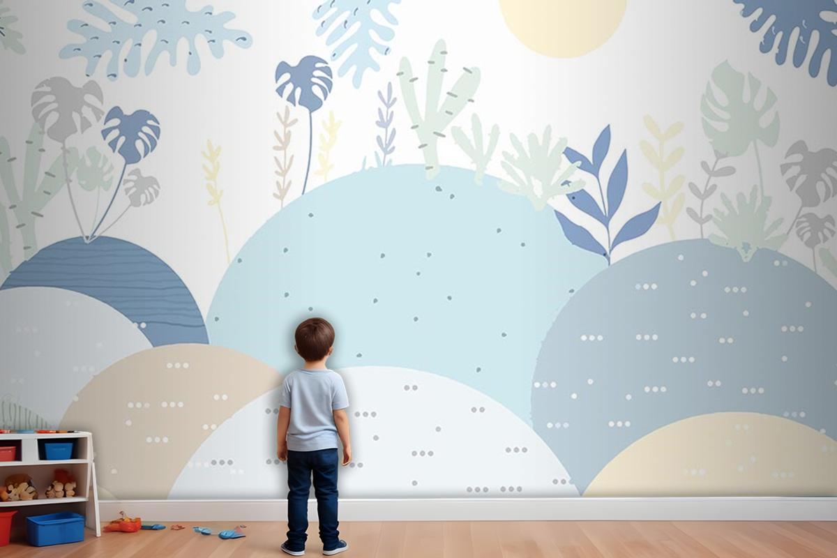 Bebek Odası Çocuk Duvar Kağıdı Soft Renk Dağlar