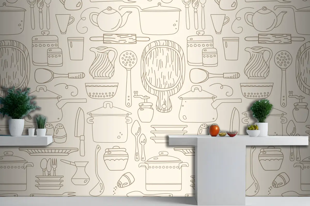 Bej Duvar Kağıdı Duvarında Mutfak Gereçleri Ile Kusursuz Desen