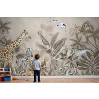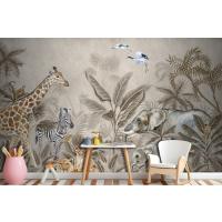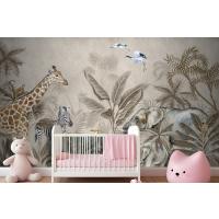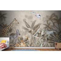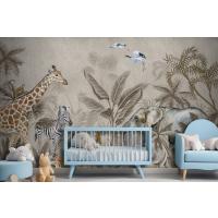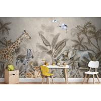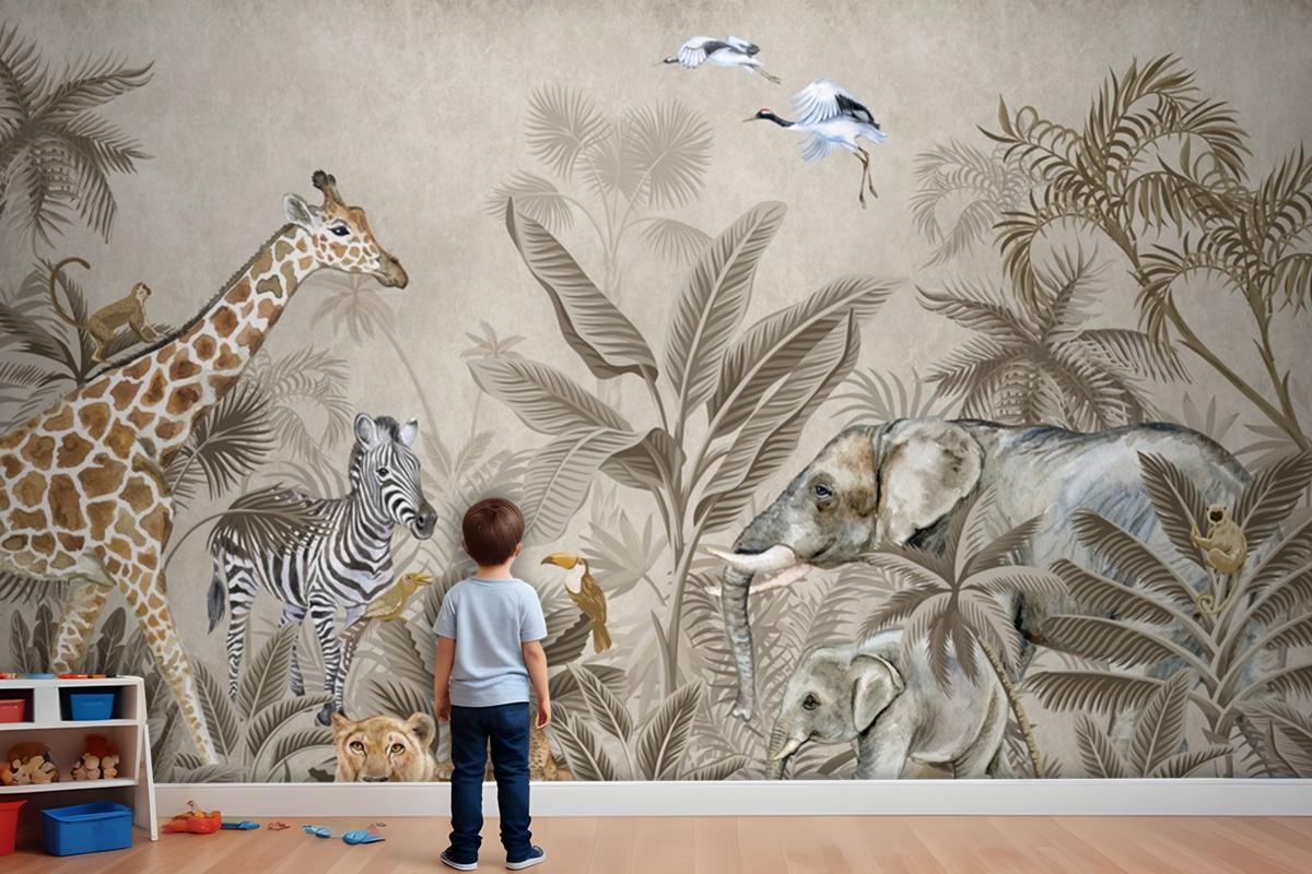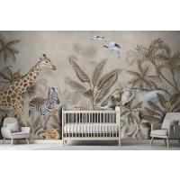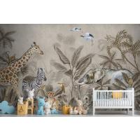 Bej Suluboya Safari Hayvanları Çocuk Odası Duvar Kağıdı