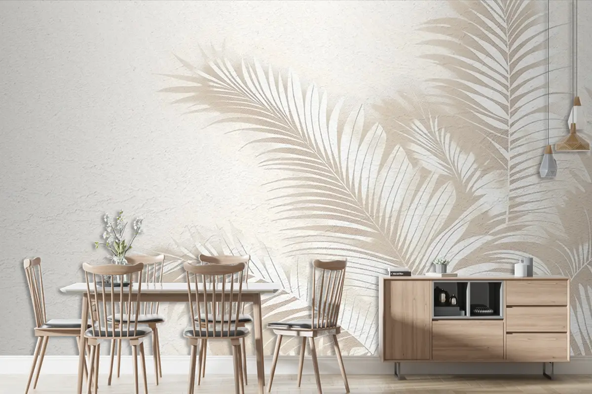 Bej Tonlarında Tropikal Dokunuş Vintage Duvar Kağıdı