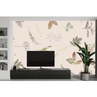 Bej Zemin Üzerine Yaprak Deseni Tv Arkası Duvar Kağıdı