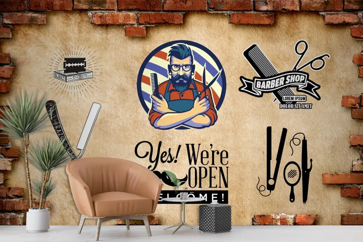 Berber Aletleri Kırık Tuğla Duvar Kağıdı