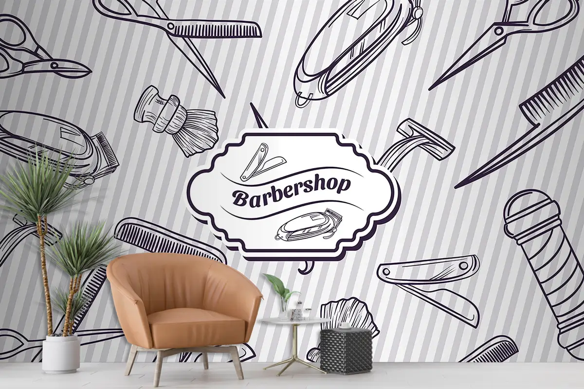 Berber Dükkanı Aletleri Erkek Kuaför Salonu Duvar Kağıdı
